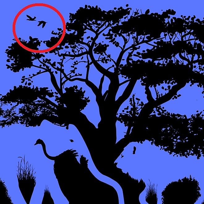 Na imagem, há quatro animais escondidos: elefante, leão, avestruz e pássaros. Veja abaixo o que cada um deles pode indicar sobre a sua personalidade.