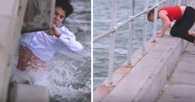 Raden tirou as calças e os sapatos e atirou-se ao mar furioso e frio, colocando sua própria vida em risco.