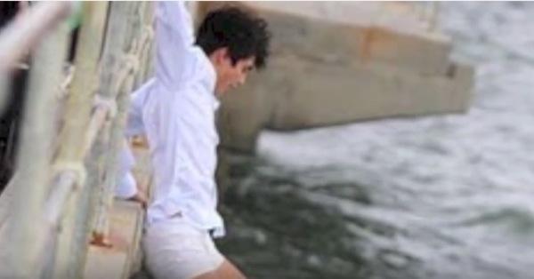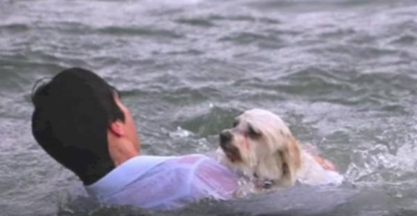 Ele nadou o mais rapidamente que pôde em direção da cadelinha, agarrou-a com um dos braços e voltou para o píer.
