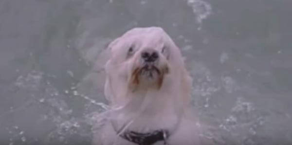 O cachorrinha, mistura das raças maltês e shitzu, tem porte pequeno e era muito leve para enfrentar o vento forte e, quando Sue e Bibi chegaram ao píer, o vento a jogou para dentro da água.