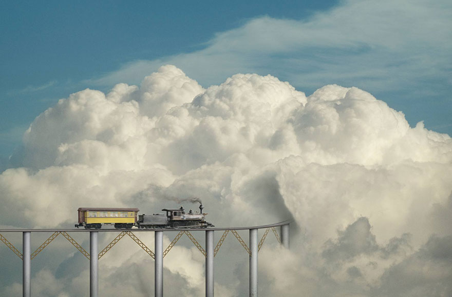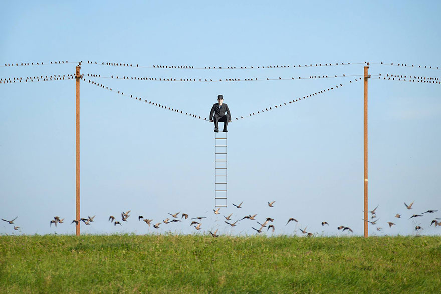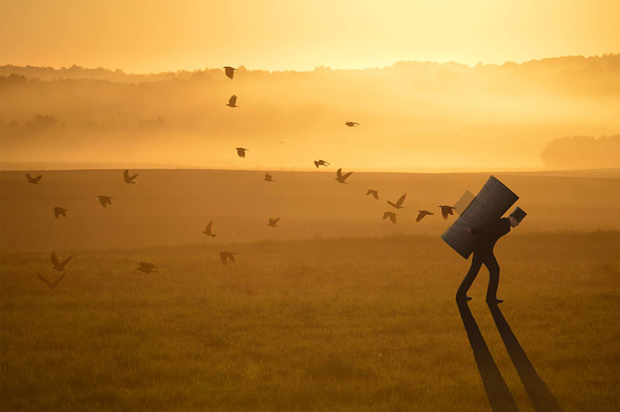Revivendo ideias imaginativas de seus sonhos desmiolados, mas cheios de sentido, o fotógrafo lituano cria imagens fantásticas que desafiam as regras da física e nos desnorteia, de certa forma, assim como fascinam.