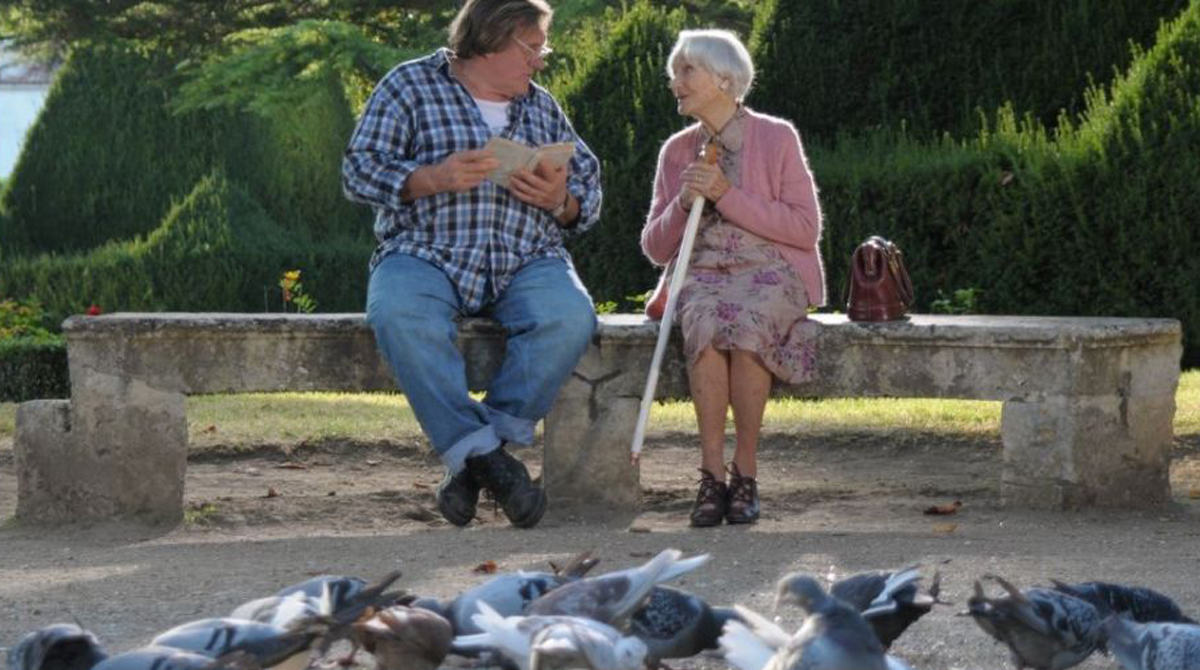 A delicadeza inserida nesse poema é a força motriz de “Minhas Tardes com Margueritte” (La Tête em Friche – 2011), de Jean Becker, filho do cineasta Jacques Becker. Conhecemos o personagem de Gerard Depardieu como o estereótipo clássico do bronco, grosseirão, um montanhoso amálgama de Forrest Gump e Kaspar Hauser, incapaz de revidar os ataques debochados diários de seus colegas. É impressionante o contraste visual que se estabelece entre ele e a frágil senhora nonagenária, interpretada com doçura pela veterana Gisele Casadesus, ainda que a aptidão dele com o trabalho suave do entalhe na madeira, aliado à sua maneira simples e pura de enxergar a vida, demonstre que o exterior abrutalhado esconde uma fragilidade existencial quase infantil.