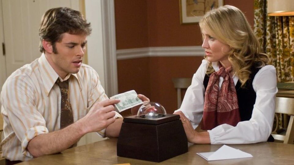 Norma Lewis (Cameron Diaz) é uma professora casada com Arthur (James Marsden), um engenheiro que trabalha para a NASA. Eles têm um filho e levam uma vida tranquila no subúrbio. Um dia surge um misterioso homem, que lhes propõe a posse de uma caixa com um botão. Caso seu dono aperte o botão ele ficará milionário, mas ao mesmo tempo alguém desconhecido morrerá. Norma e Arthur têm 24 horas para decidir se ficarão ou não com a caixa. Esse filme é bastante psicológico. Tem uma narrativa que certamente não vai agradar a todos, mas é muito interessante do ponto de vista ético. O que você faria?