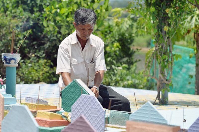 O ex-trabalhador da construção civil pegou suas economias de anos e comprou um terreno no topo de uma colina chamada Hon Thom, na cidade de Nha Trang, no sudeste do Vietnã, e começou a sepultá-los, um por um, como correspondia.