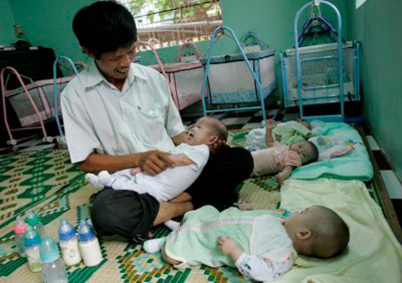 O que ele fez? Começou a adotar as crianças com a ideia de que, quando as mães possam (arrumem um trabalho, aceitação da família, etc.), venham buscá-los para então criá-los com dignidade. E, se não retornarem, ele mesmo cria e educa. Hoje em dia, Tong alberga mais de 100 crianças em seu lar.