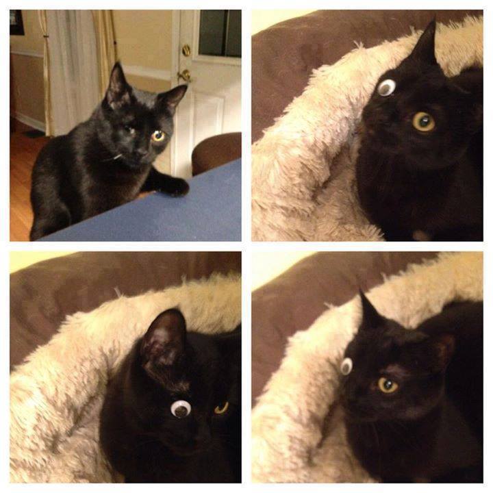 Um dia, seu dono de 5 anos colocou nele um olho de plástico (daquele tipo que vem colado em ursinhos de pelúcia). As pessoas ficaram surpresas ao ver o gato tinha um olho falso e perguntaram ao menino por que ele decidiu colocar um olho no gato.
