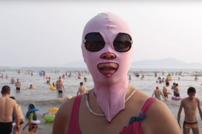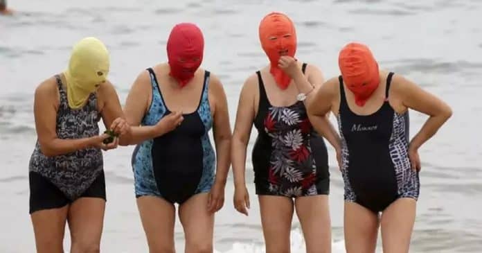 O item mais notável dessa tendência é o “facekini”, uma máscara facial completa que tem ganhado popularidade como uma forma de proteção contra o sol abrasador.