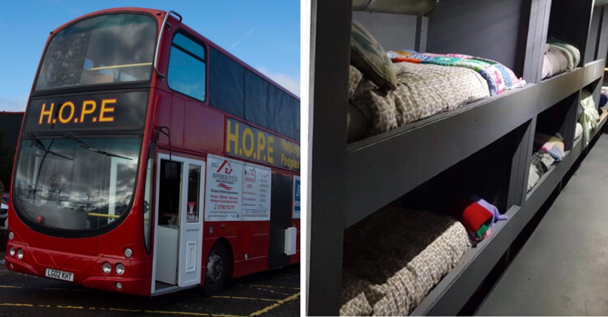 Foi quando viajaram para Bristol, na Inglaterra, que tiveram a ideia de transformar um dos clássicos ônibus vermelhos de dois andares em um abrigo para os sem-teto.