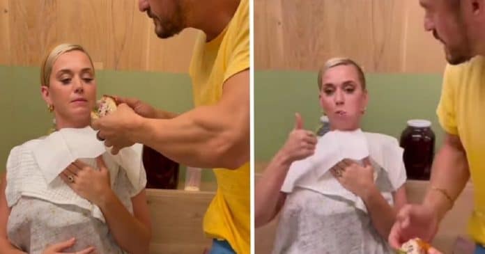 Viralizou recentemente nas redes sociais um vídeo compartilhado por Katy Perry em seu perfil no Instagram. Nas imagens, o marido da cantora americana, o ator Orlando Bloom, cuidadosamente a alimenta com um sanduíche na boca enquanto ela amamenta a filha, Daisy Dove.