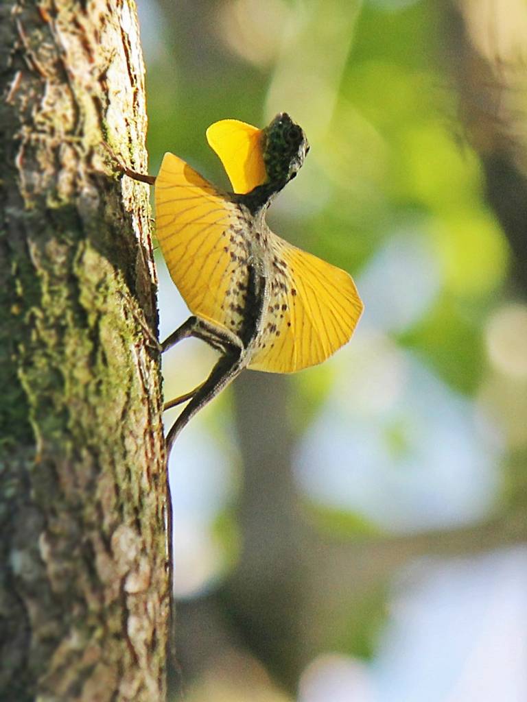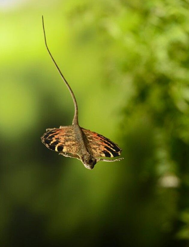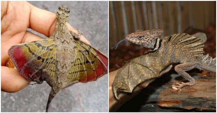 O Draco, também conhecido como “dragão voador”, pertence à família dos lagartos Agamidae. Eles vivem nas árvores das florestas tropicais do sudeste da Ásia.