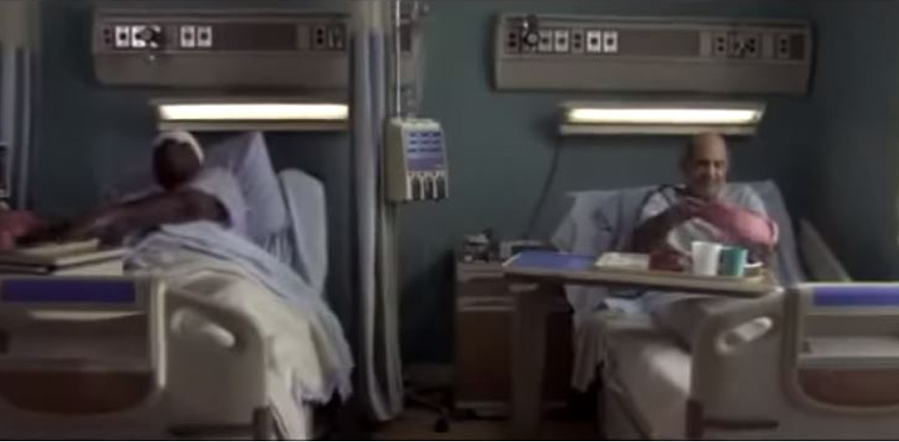 A enfermeira disse logo que sim e fez a troca. Depois de se certificar de que o homem estava bem instalado, a enfermeira deixou o quarto.