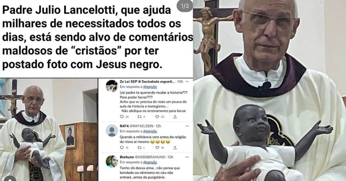 Neste sábado (24), o Padre Júlio Lancellotti publicou uma foto em suas redes sociais que causou um série de comentários que o criticaram e o acusaram de estar “lacrando”. O sacerdote posou com um menino Jesus negro em suas mãos.