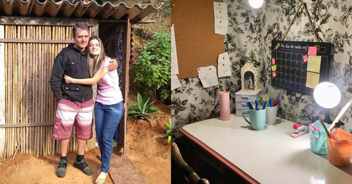 Pai constrói quartinho de bambu para filha que não tinha lugar para estudar