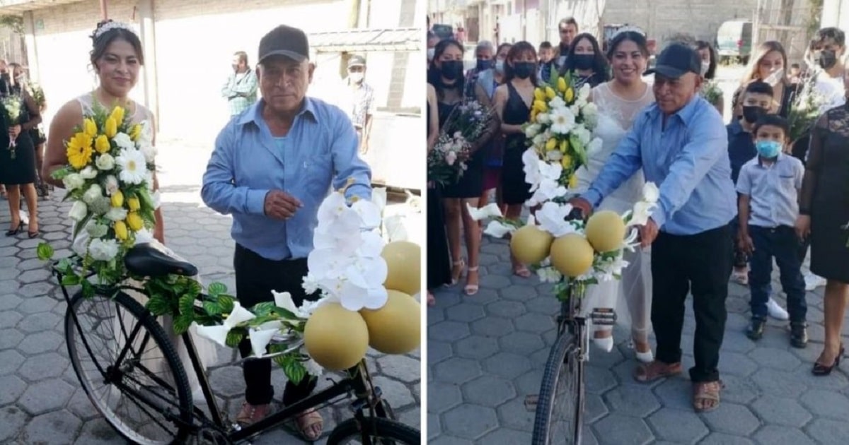Às vezes o mais simples é o mais bonito, e quem sabe bem disso é um homem que vive em Miahuatlán, Puebla, no centro do México. Ele decidiu enfeitar sua velha bicicleta para levar sua filha à igreja no dia do casamento dela.