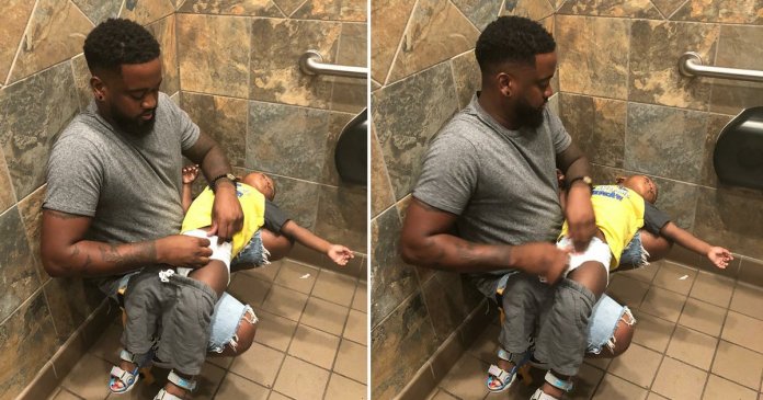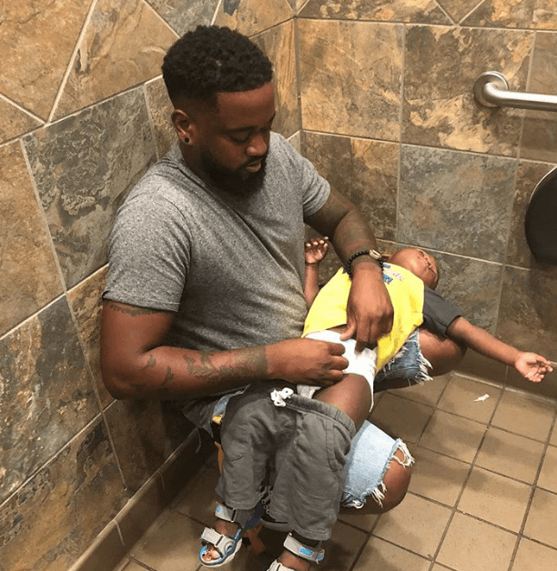 O pai norte-americano Donte Palmer, da Flórida, decidiu postar na internet um problema pelo qual passa todos os dias e que também afeta muitos outros pais ao redor do mundo. Por vivermos em uma sociedade ainda muito machista, trocadores de bebês usualmente não são instalados em banheiros masculinos, o que dificulta e muito o trabalho dos pais.