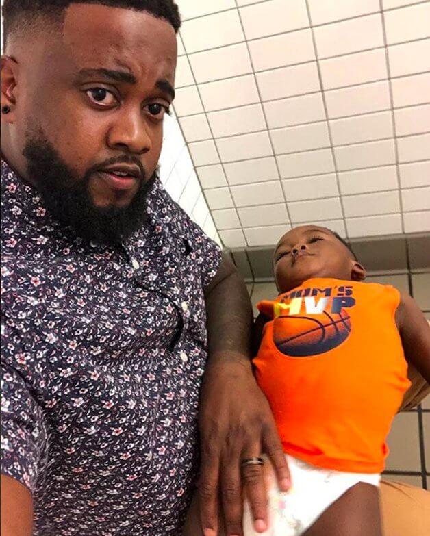 Em uma postagem, Donte contou sobre o malabarismo que precisa fazer para conseguir trocar a fralda do filho, junto com uma foto que mostra a dificuldade: