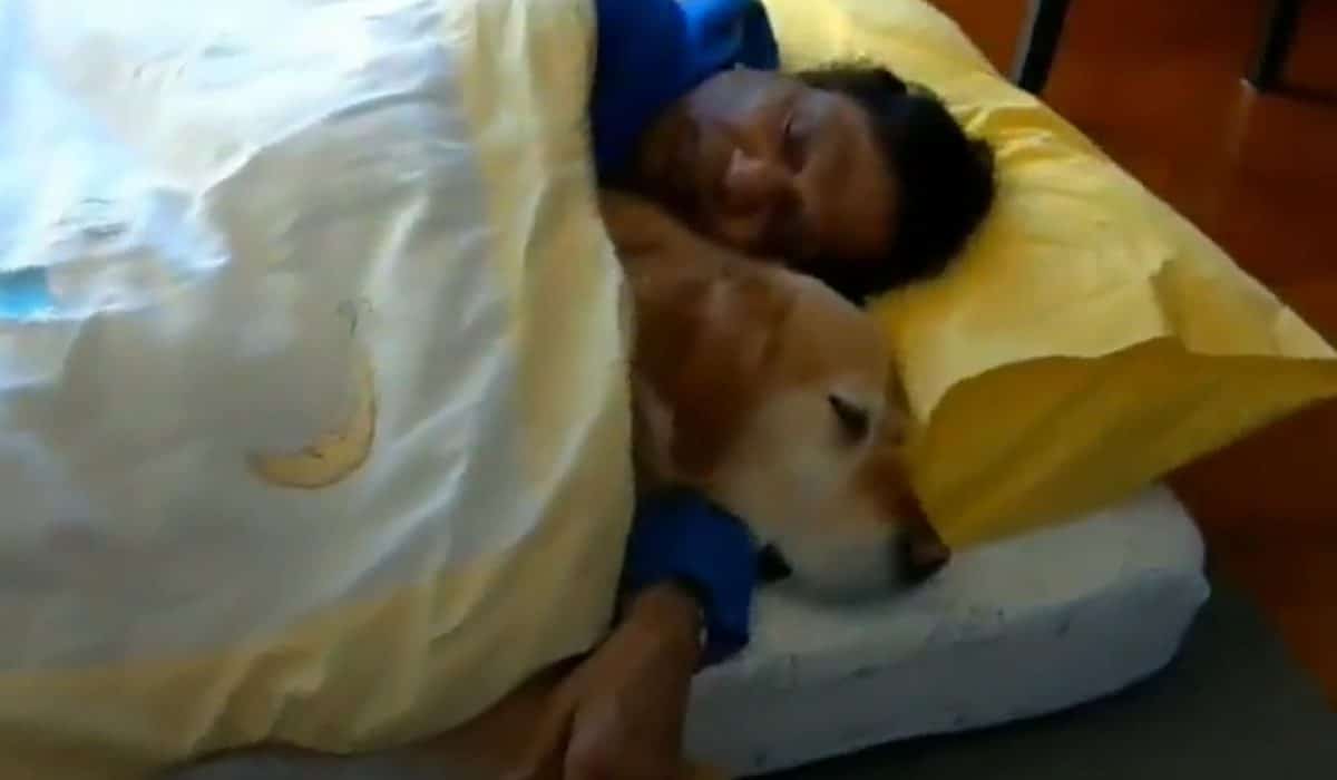 Quando Oliver está cochilando, o pai de Rachael o coloca na cama e o cobre – e é definitivamente uma das imagens mais fofas do mundo.