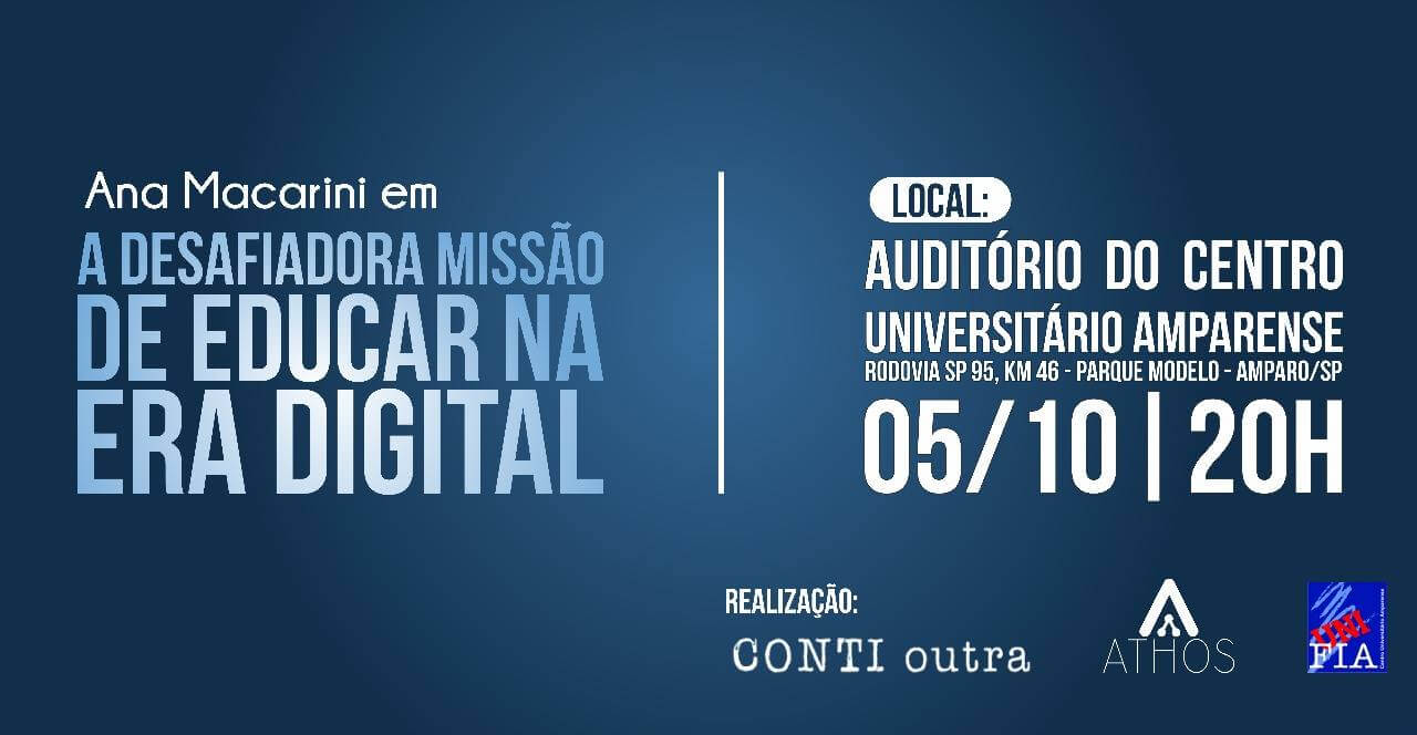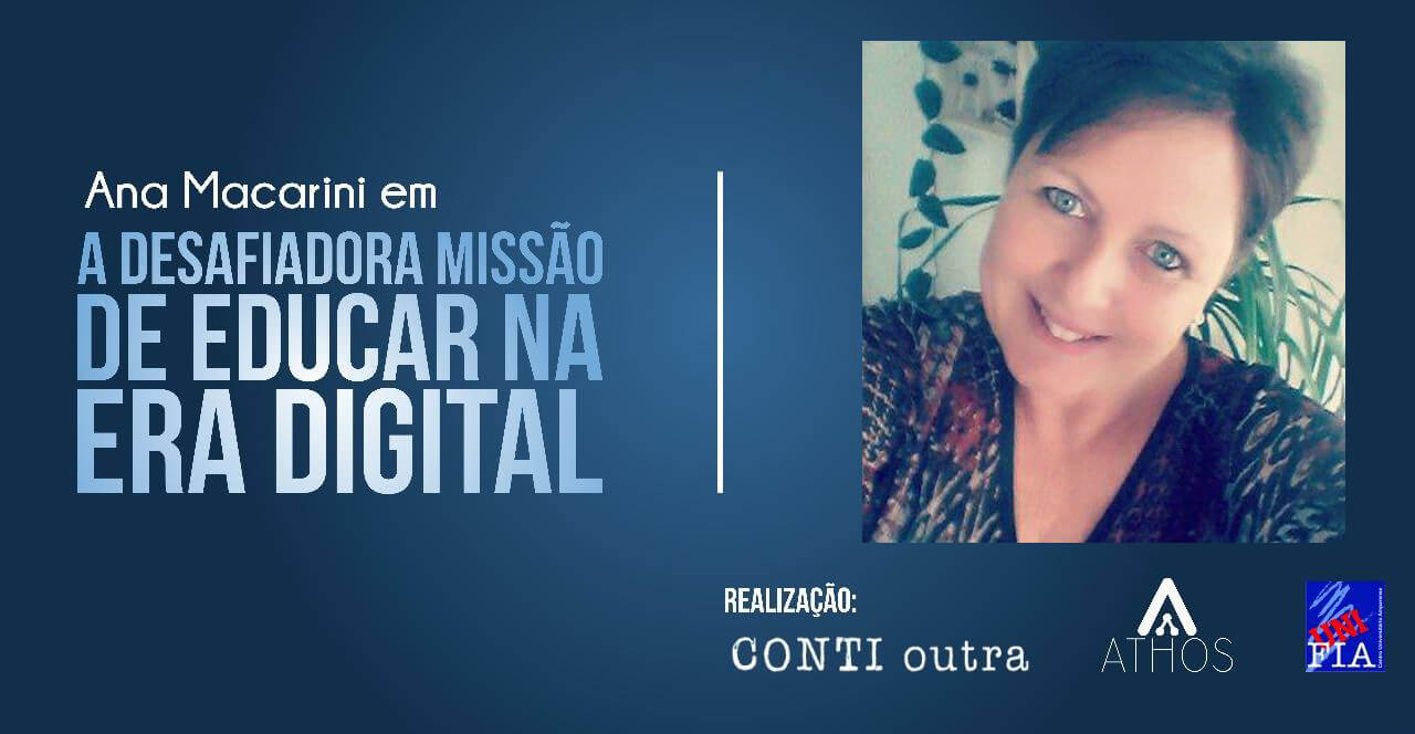 Palestra: A Desafiadora Missão de Educar na Era Digital Por CONTI outra - 29 set 2017 Compartilhar FacebookTwitterPinterestWhatsApp A Desafiadora Missão de Educar na Era Digital O mundo está mudando. Mas a educação, como fica? Ana Macarini é natural de São Paulo. Educadora, Pedagoga, Psicopedagoga, Mestre em Disfunções de Leitura e Escrita e Escritora, Ana Macarini traz em seu currículo renomadas universidades, como USP, PUC/SP, Escola Paulista de Medicina e Harvard School of Education. Público Alvo: Professores e profissionais de áreas correlatas. Investimento: R$ 25,00 CONTI outrahttps://www.contioutra.comAs publicações do CONTI outra são desenvolvidas e selecionadas tendo em vista o conteúdo, a delicadeza e a simplicidade na transmissão das informações. Objetivamos a promoção de verdadeiras reflexões e o despertar de sentimentos. Facebook Instagram Pinterest Spotify Twitter Youtube INDICADOS Quando a doença mental não tratada se torna crônica — e a mente, o corpo e a vida pagam o preço Josie Conti