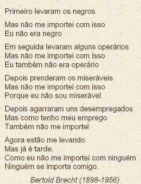 O texto abaixo é da autoria de Bertold Brecht. Esse material foi o mais compartilhado da semana na página CONTIoutra do facebook.