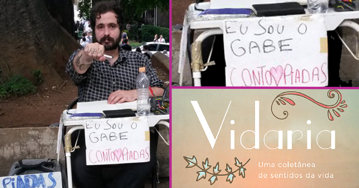 Naquele começo de tarde, eu caminhava apressada pela Avenida Paulista em direção ao metrô Trianon quando li a seguinte frase: “Eu sou o Gabe. Conto piadas.” O cartaz estava colado numa mesinha na calçada. Sentado nela, um rapaz fazia anotações num caderno.