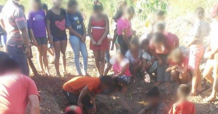 Os muitos vídeos e fotos que circulam pelas redes nos últimos dias mostram famílias que passam fome na cidade cavando para pegar as 1,2 mil caixas de carnes que tinham sido apreendidas pela Marinha argentina. Entre as pessoas que cavam, há crianças, mulheres e idosos.