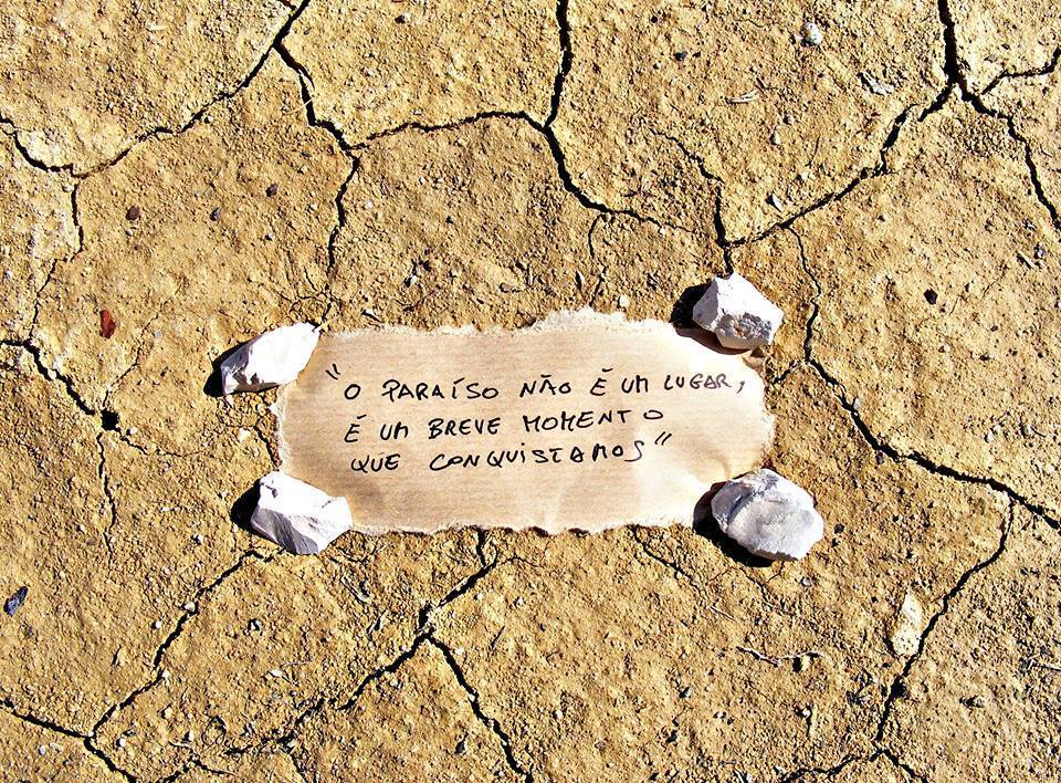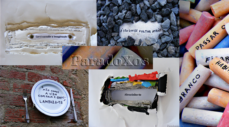 A concretude da poesia é um paradoxo. A sua essencialidade, também. Sabedor disso, Heduardo Kiesse fez de sua página no Facebook, ParadoXos, o retrato de sua “eternidade provisória”, inserindo a palavra escrita em universos inusitados: pedra, giz, parede; o próprio chão pode ser substrato da poesia.