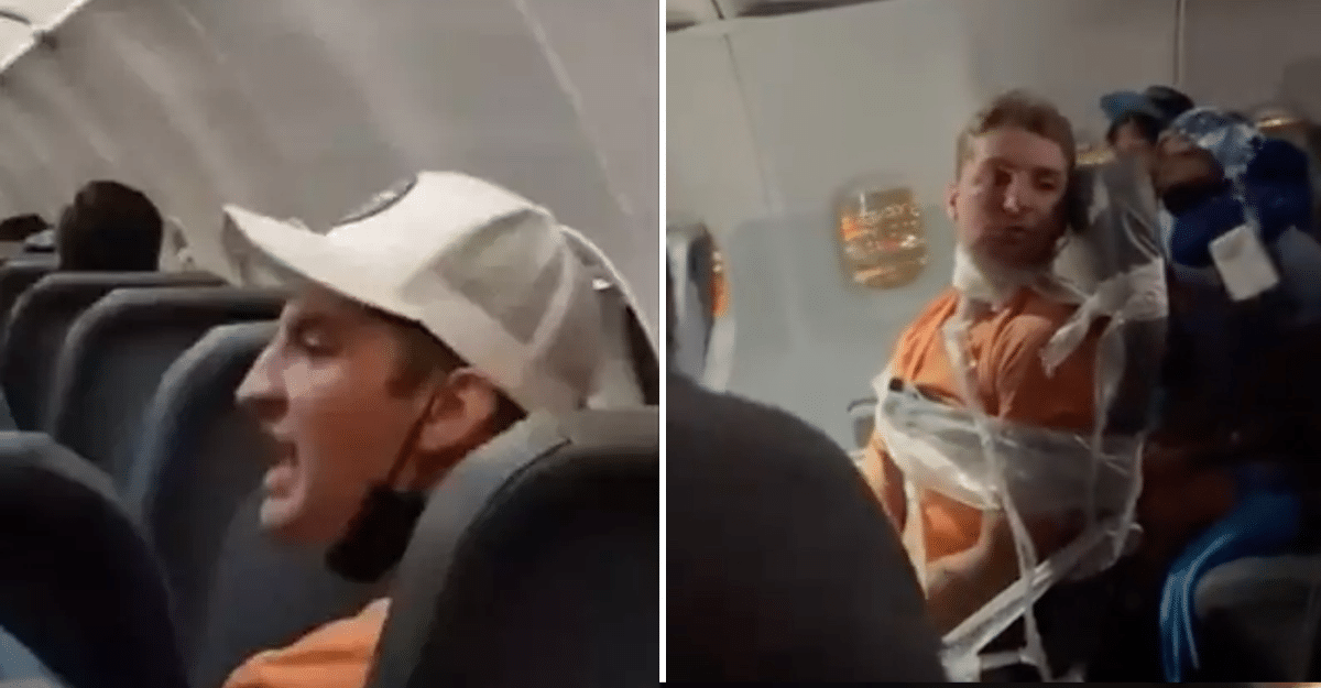 Esse voo entre estados norte-americanos não foi nem um pouco relaxante para a tripulação. Um dos passageiros, de 22 anos teve que ser amarrado em seu assento para ser contido até que a viagem terminasse.