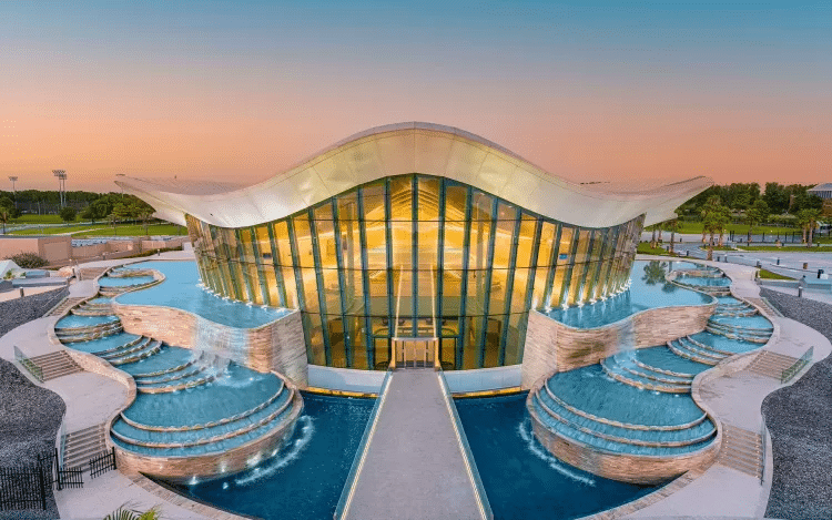Formada por uma ostra colossal no bairro de Nad Al Sheba, em homenagem à herança do mergulho com pérolas do emirado, a piscina também é o maior estúdio de cinema subaquático da região, segundo informações da revista especializada Travel and Leisure. Esse recurso exclusivo é complementado por sistemas de iluminação e som de última geração, acompanhados por uma suíte de edição adjacente.