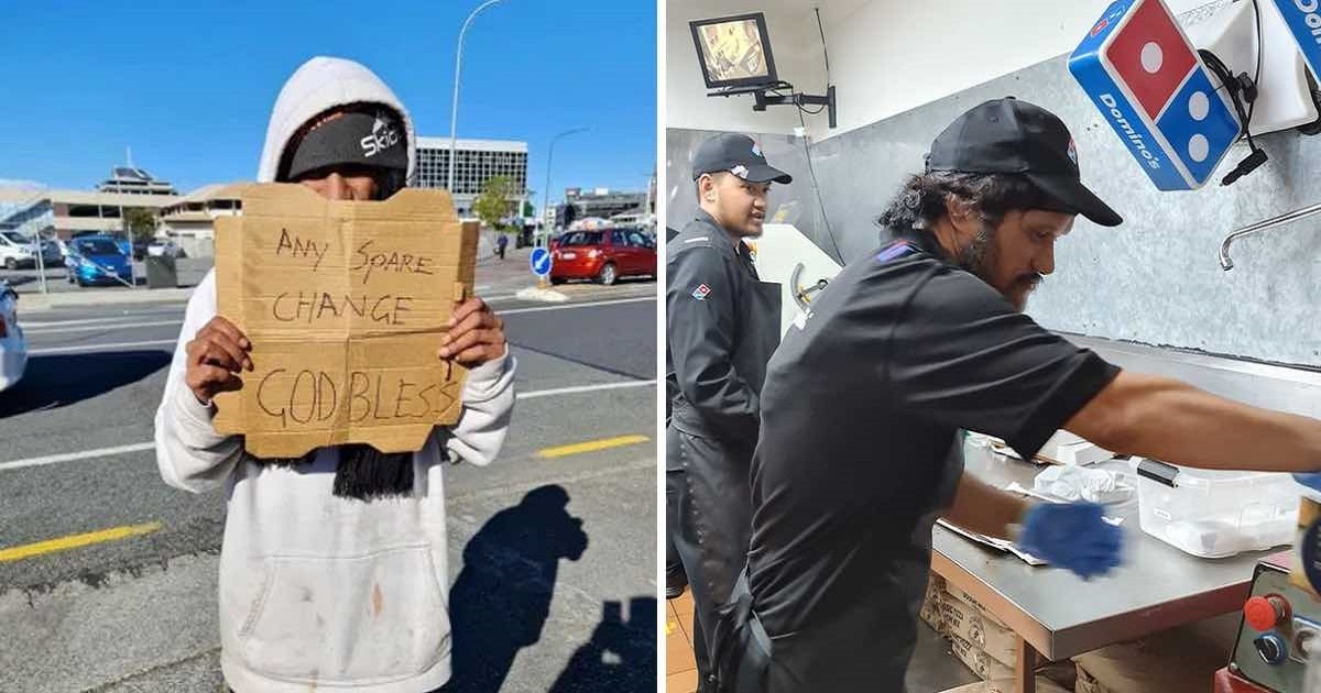 Às vezes, há histórias de vida que excedem a ficção. É o caso de um homem que morava nas ruas da Nova Zelândia, pediu esmola com uma caixa de papelão de uma conhecida marca de pizzas e acabou sendo contratado para trabalhar lá.