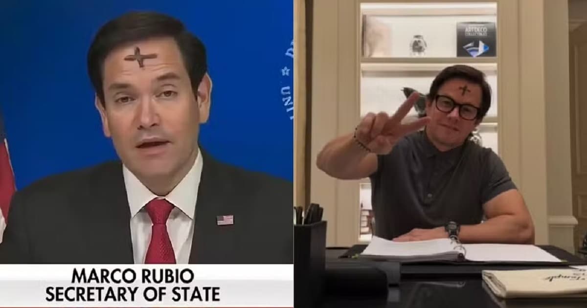 Nesta quarta-feira (5), o secretário de Estado dos EUA, Marco Rubio, e o ator de Hollywood Mark Wahlberg, chamaram a atenção ao aparecerem publicamente com uma cruz cinza desenhada na testa. O símbolo, que faz parte das tradições cristãs da Quarta-feira de Cinzas, foi utilizado por ambos em momentos distintos: Rubio durante uma entrevista à Fox News, e Wahlberg em um vídeo postado em suas redes sociais.