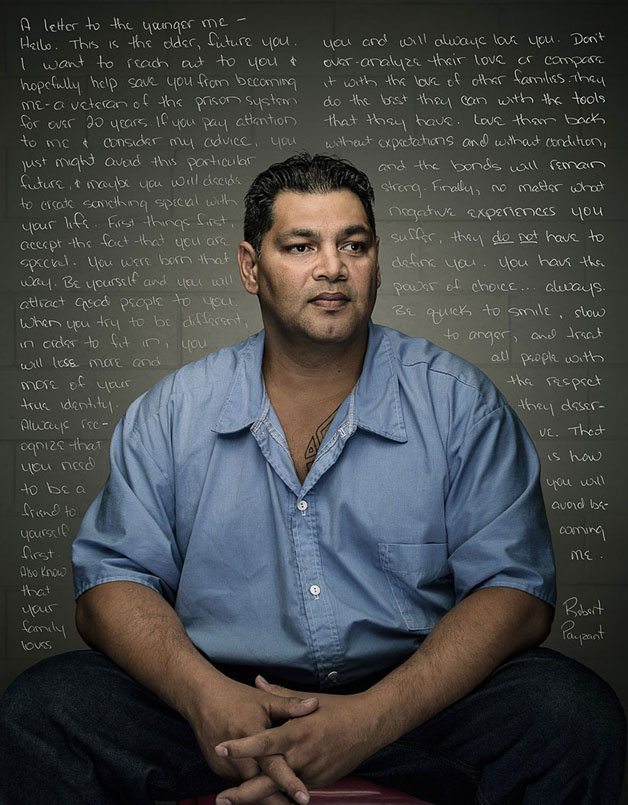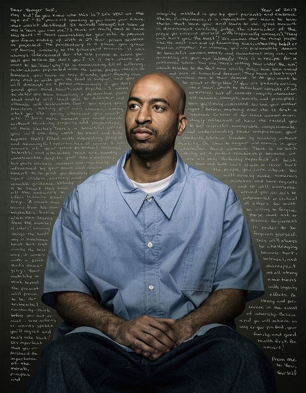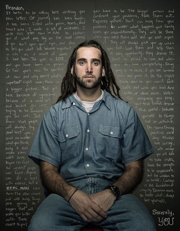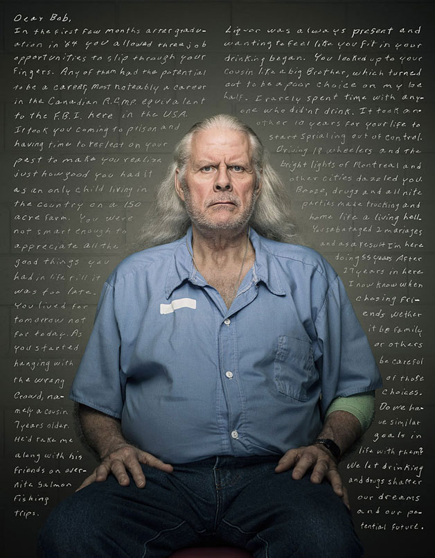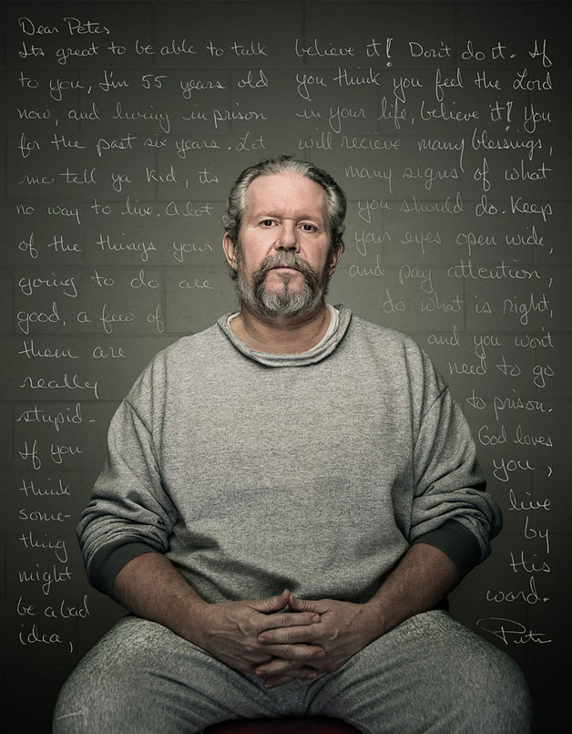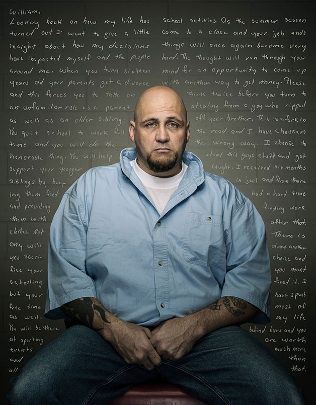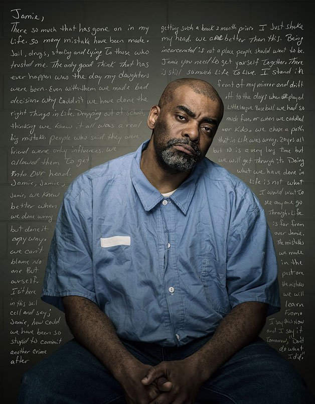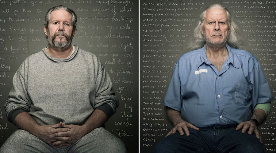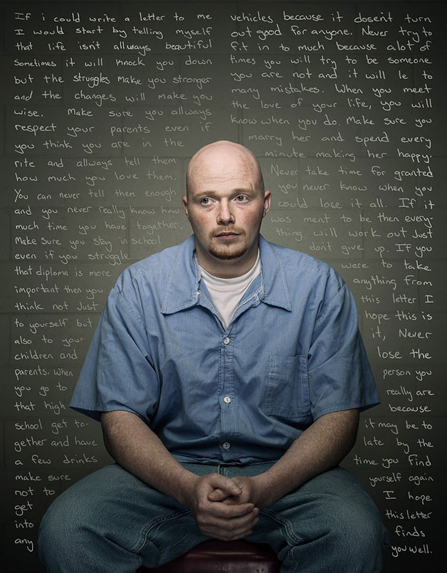 Trent Bell, fotógrafo que trabalha basicamente com arquitetura, retratou um grupo de prisioneiros e pediu para que escrevessem a carta. Digitalizados, os documentos foram mesclados na imagem, tornando-a ainda mais impactante.
