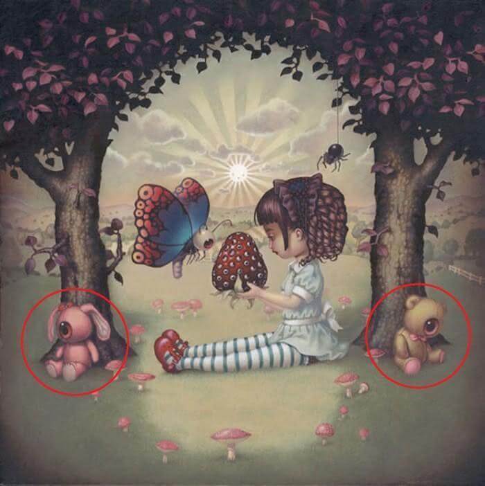No entanto, os ursos de pelúcia dessa imagem estão distorcidos, e o fato de você vê-los primeiro revela algo interessante: você tem medo de ter medo.