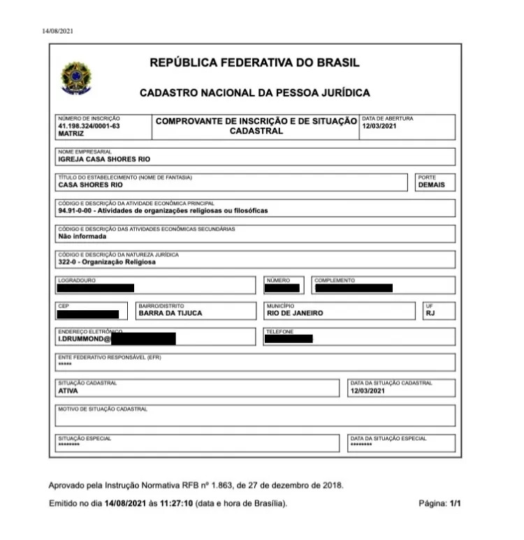 “Mas não era segredo. Sendo ela uma pessoa pública, com uma igreja que também recebe abertamente as pessoas, dificilmente seria um segredo. E se tem CNPJ, também é público”, disse.