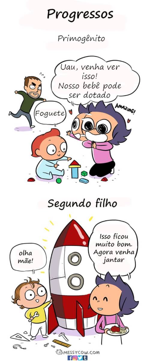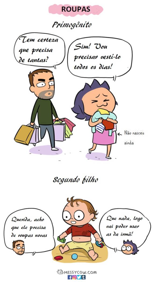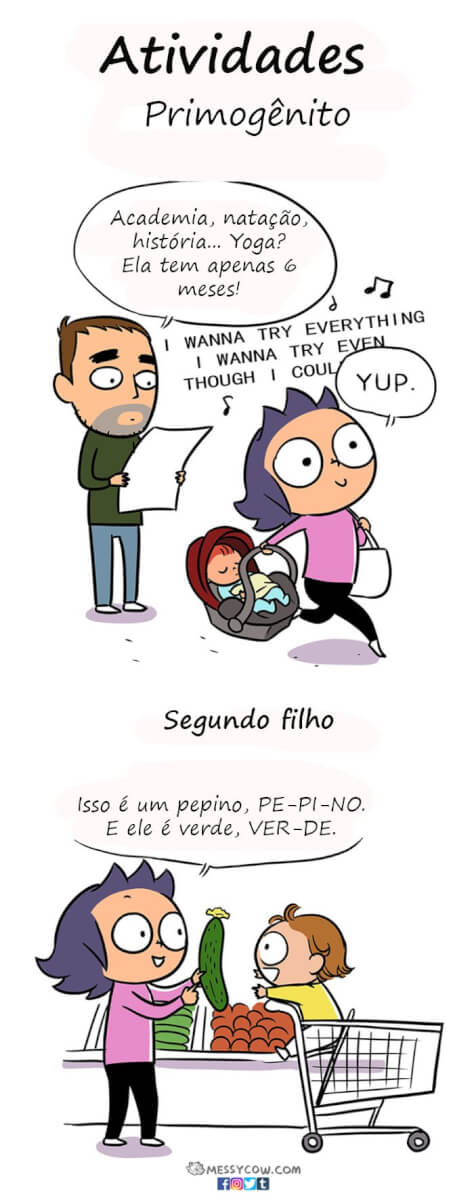 A artista Weng Chen criou uma série de ilustrações em que brinca com as diferenças entre a primeira gravidez e o nascimento do primeiro filho, para o nascimento dos filhos seguintes. Na primeira gravidez, os pais costumam estar mais tensos e preocupados, enquanto nas demais ocorrem um certo relaxamento.
