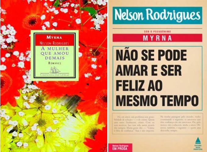 Curiosa, fui atrás para saber mais sobre Myrna e lendo um livro coletânea “dela” que tem como título a frase emblemática “Não se pode amar e ser feliz ao mesmo tempo”, não me foi difícil perceber que Nelson guardava em seus conselhos um conservadorismo típico de seu tempo. Muitos conselhos de Myrna giravam em torno da importância das mulheres fazerem os maridos felizes, contudo, muito diferente do que vemos hoje, os conselhos dela eram bastante emblemáticos, quase pontuais. Tinham uma ousadia latente, conferida, provavelmente, pelo fato dessa mulher ser um pseudônimo.