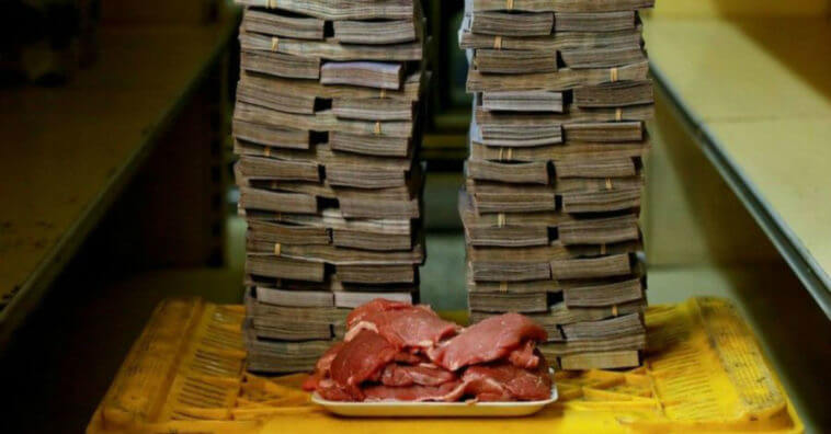 Um quilo de carne é mais ou menos 9.500.000 bolívares.