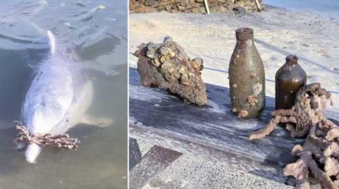À emissora de TV 7News, um voluntário de projeto ambiental contou que os golfinhos trazem desde esponjas a garrafas plásticas cobertas de cracas e fragmentos de coral.