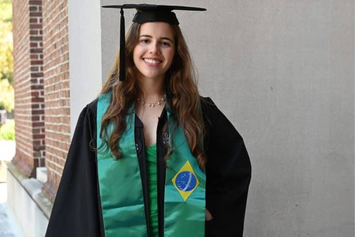 Sarah cursou Psicologia com bolsa integral e dividiu as salas de aula com colegas de 94 países, totalizando 1.960 formandos.