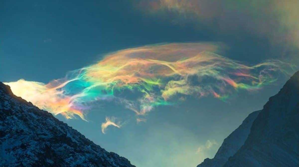 Você pode ocasionalmente ver uma nuvem parecida com um arco-íris. Elas são bastante raras, mas, às vezes, alguém tem a sorte de presenciar. Elas são causados pela presença de cristais de gelo muito pequenos ou gotas de água no ar, que fazem com que a luz seja difratada (espalhada).