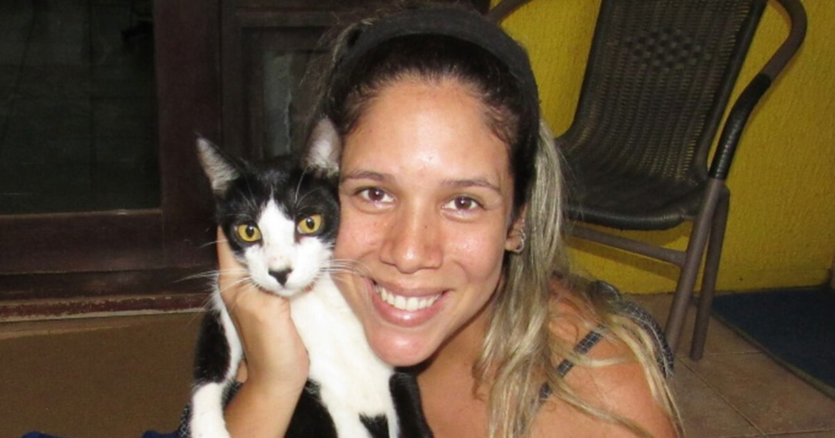 Imagens: Beck, o gato ladrão, e a dona do animal , Andresa (Foto: Ana Clara Marinho/TV Globo)