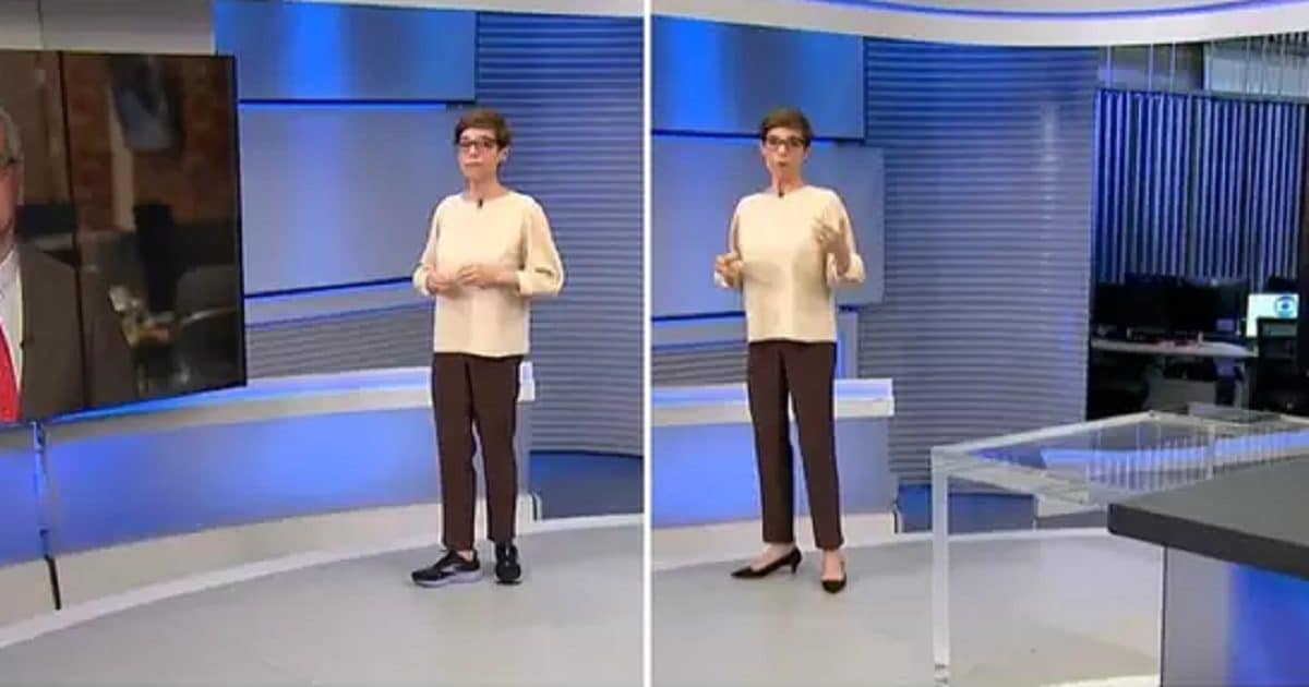 De acordo com o Terra, a jornalista costuma deixar os calçados sociais embaixo da bancada e os coloca pouco antes de o Jornal da Globo começar.