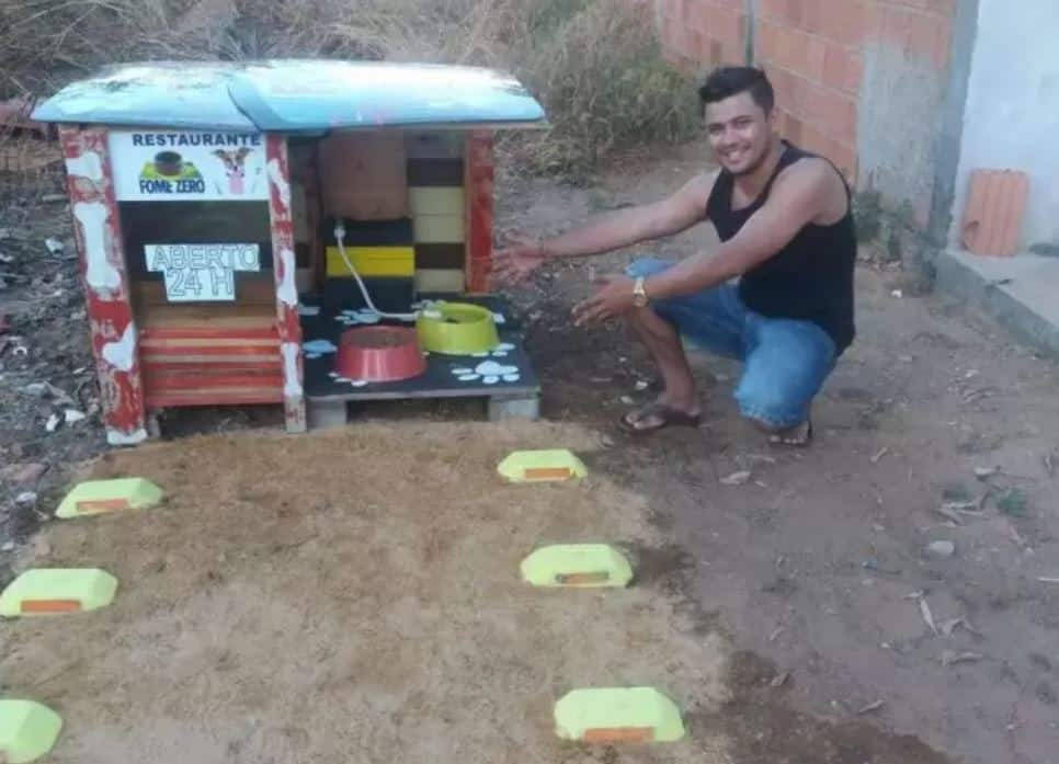 João de Souza Araújo (29), que mora em Palmas, no Tocantins, criou um projeto que consiste em fornecer comida e água 24 horas por dia a animais abandonados. Isso se dá através de uma engenhosa invenção que ele batizou como ‘Restaurante Fome Zero’.