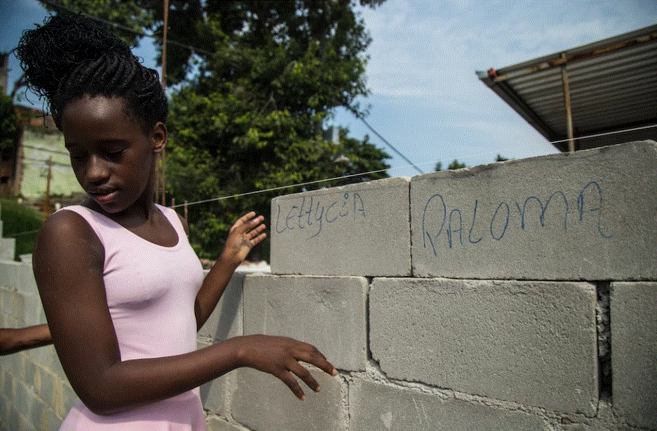 “Neste momento para o Brasil, construir nosso espaço é mais que a realização de um sonho – é um poderoso grito de resistência”, disse Tuany, que começou a documentar o progresso do centro no Instagram, postando fotos de suas alunas transportando blocos e sacos de cimento pelas ruas estreitas da favela. Para deixar sua marca no prédio, as garotas escreveram seus nomes em alguns dos blocos e colocaram cartas sobre suas ambições nos vãos das paredes.