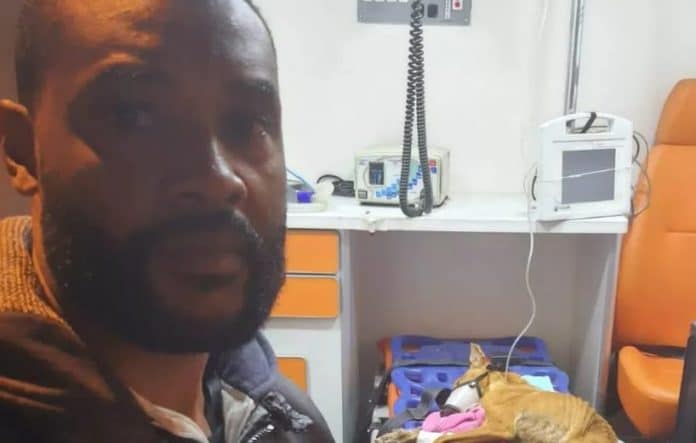 Moysés levou a cachorra perto de uma parede com o intuito de protegê-la do vento. Pessoas que estavam próximas ao local acionaram o Samu Animal. Cerca de 40 minutos depois, po serviço sergou ao local, medicou a cachorra e a socorreu ao Departamento de Proteção e Bem Estar Animal (DPBEA), onde segue sob tratamento médico veterinário.