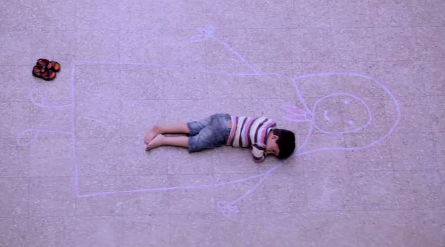 “Deitada em um frio pátio de cimento, a criança que teria perdido a mãe na guerra e hoje moraria em um orfanato, teria desenhado a mãe com um pedaço de giz.