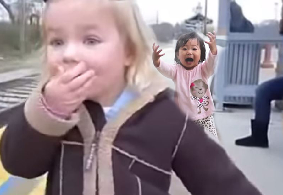 No primeiro vídeo, uma linda menininha vê um trêm pela primeira vez e seu encanto é tanto que o vídeo é imperdível!
