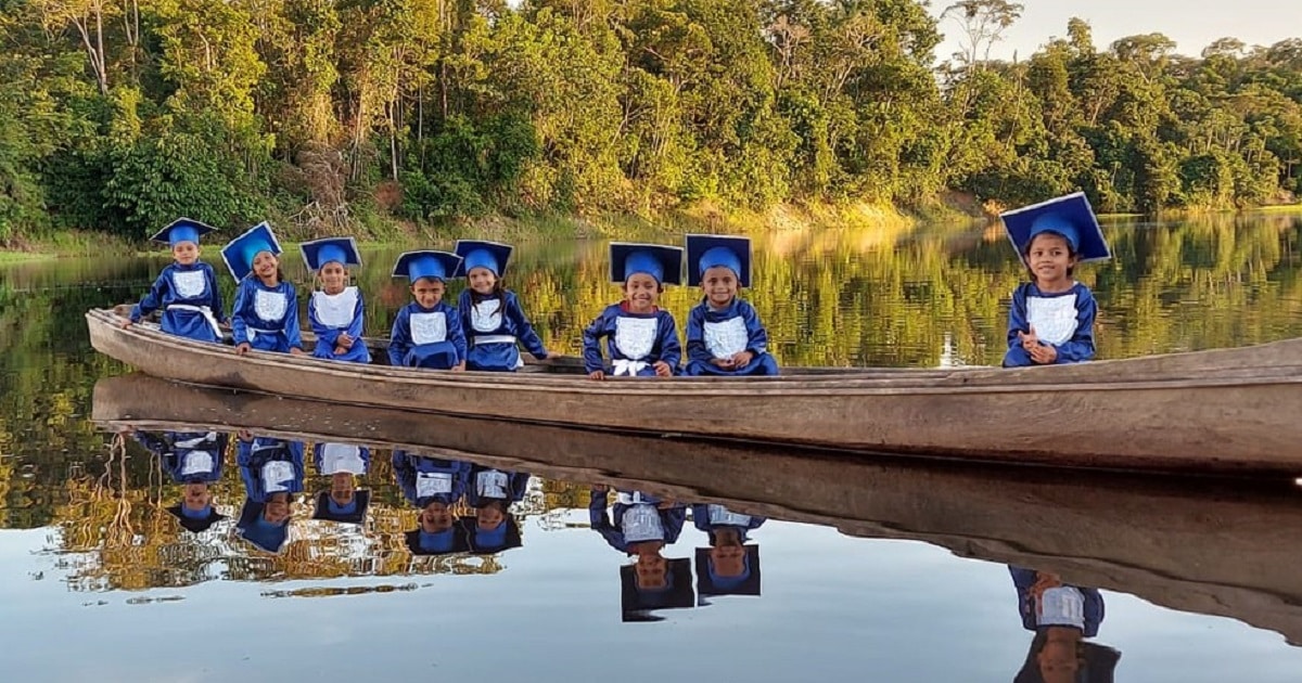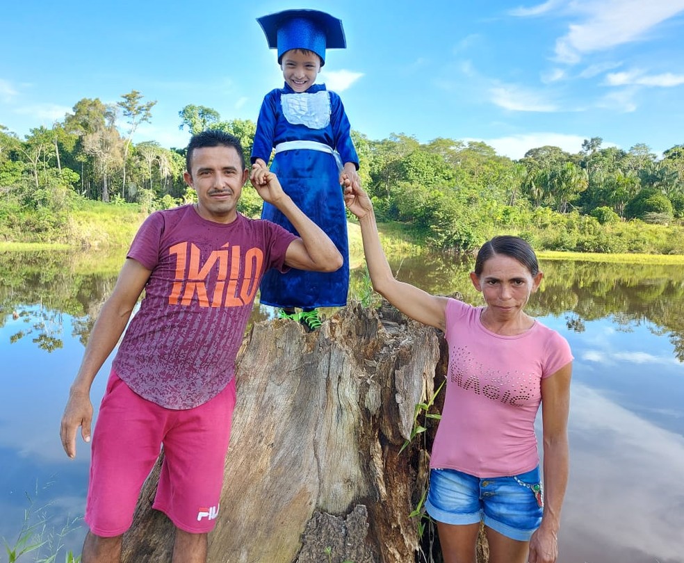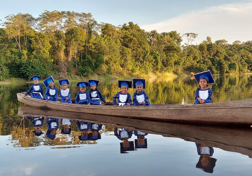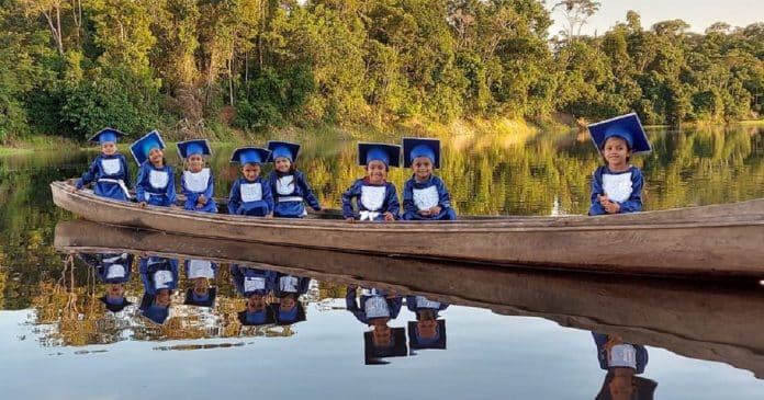 Com o intuito de homenagear a cultura e o estilo de vida das crianças ribeirinhas, a professora Laura Viviane decidiu fazer uma sessão de fotos com os formandos e as famílias em um ambiente que muitos conhecem e devem usar como local de trabalho nos próximos anos: o lago e a floresta. O resultado é fofíssimo!