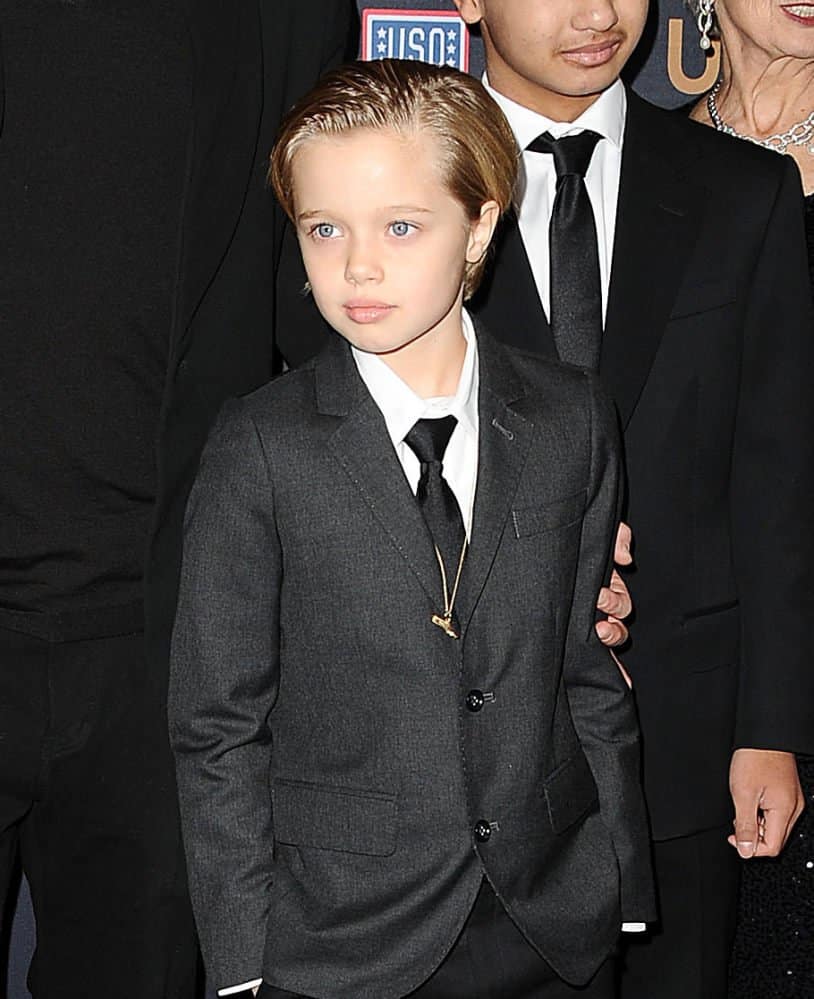 Tudo começou em 18 de outubro, na estreia do filme em Los Angeles, quando Shiloh, de 15 anos, caminhou no tapete vermelho com um vestido de cor neutra combinando com o de sua mãe- muito diferente dos ternos infantis que ela usou ao longo dos anos.