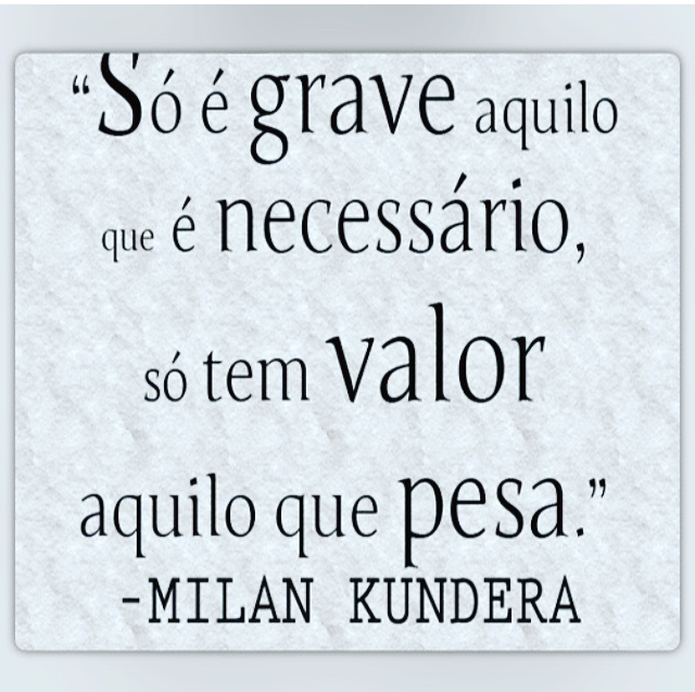 “Quanto mais pesado o fardo, mais próxima da terra está a nossa vida, e mais ela é real e verdadeira. Por outro lado, a ausência total de fardo faz com que o ser humano se torne mais leve do que o ar, com que ele voe, se distancie da terra, do ser terrestre, faz com que ele se torne semi-real, que seus movimentos sejam tão livres quanto insignificantes. Então, o que escolher? O peso ou a leveza?”