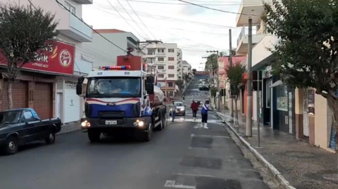 A cidade de Socorro, no interior de São Paulo, deu início nesta semana a uma limpeza semanal das ruas mais movimentadas da cidade com uma mistura de cal virgem e água.